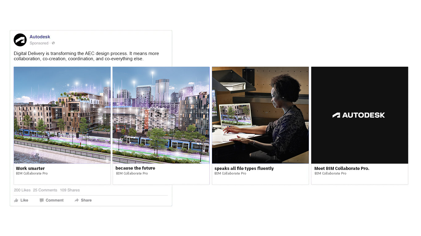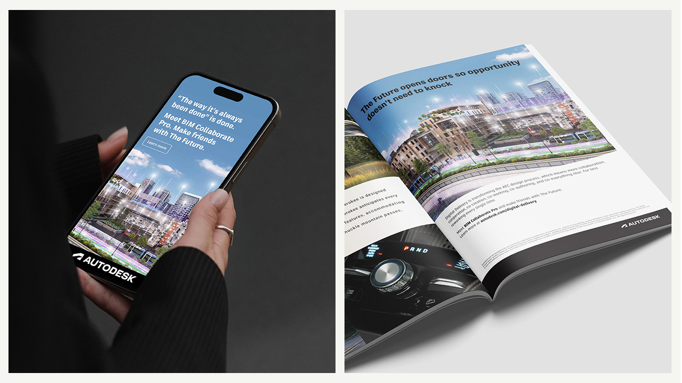 Building on a previous campaign to elevate BIM Collaborate Pro as a must-have solution for architecture and engineering firms, I partnered closely with a 3D artist, providing art direction to develop a visual treatment centered on data visualization. The concept translated complex data flows into compelling narratives across transportation and industrial environments. Creating hero imagery from the 3D videos - we ensured a cohesive visual through line across this integrated campaign.